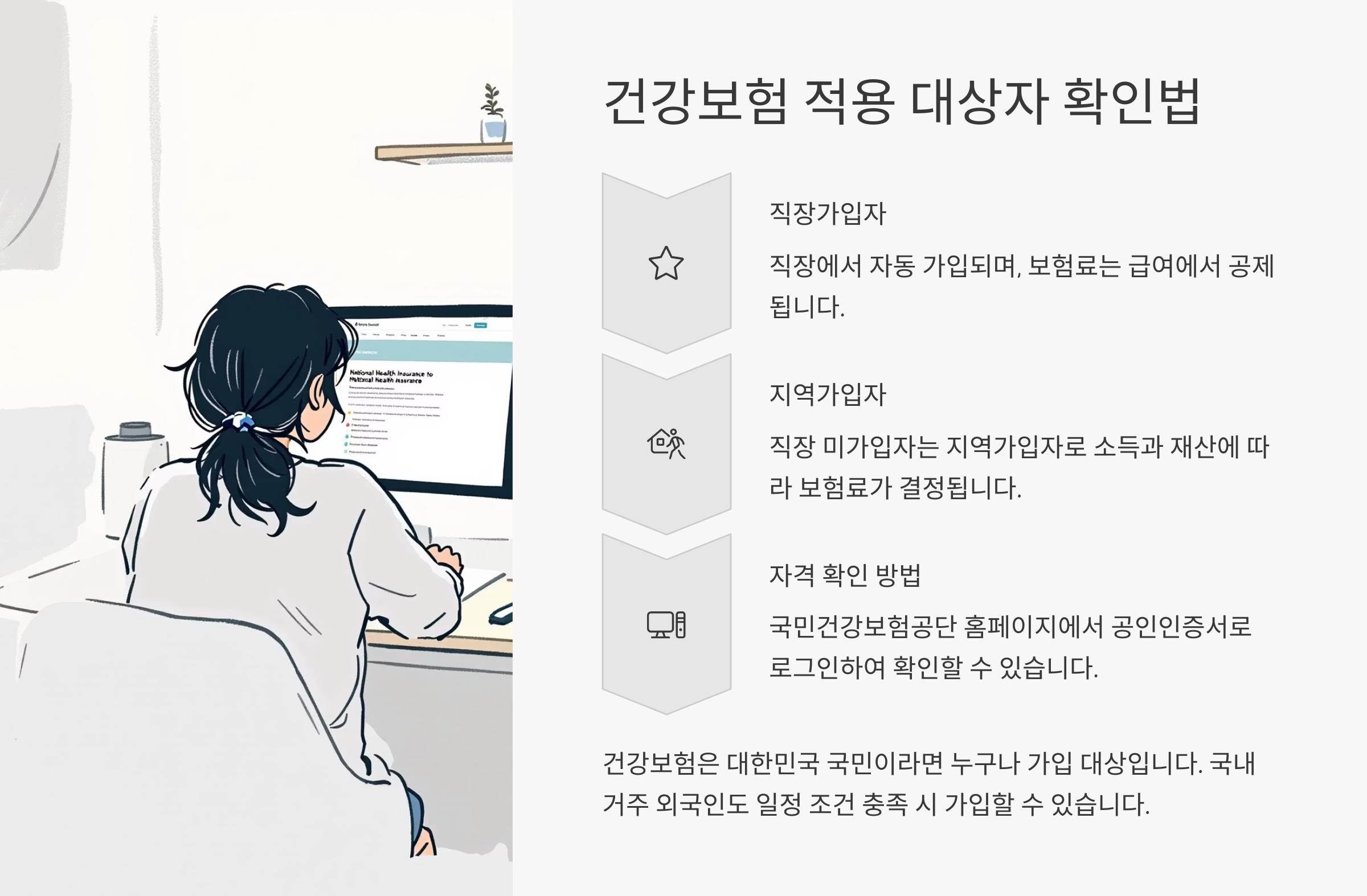 이제 다음으로 건강보험 적용 대상자에 대해 알아볼게요. 어떤 기준으로 누구에게 보험이 적용되는지도 꽤 중요한 포인트랍니다! 👇