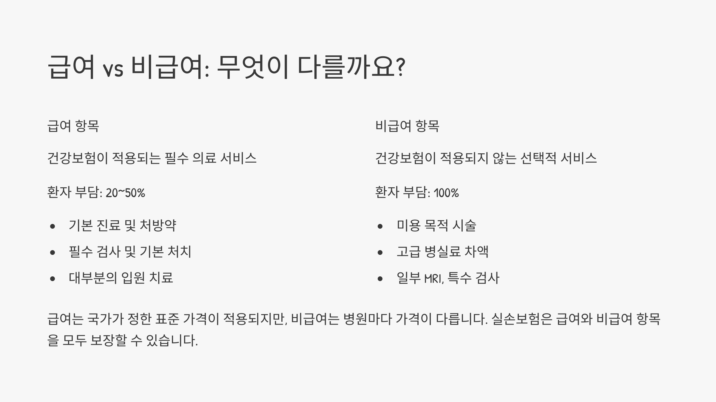 비급여 진료와 급여 진료 차이 🔍
