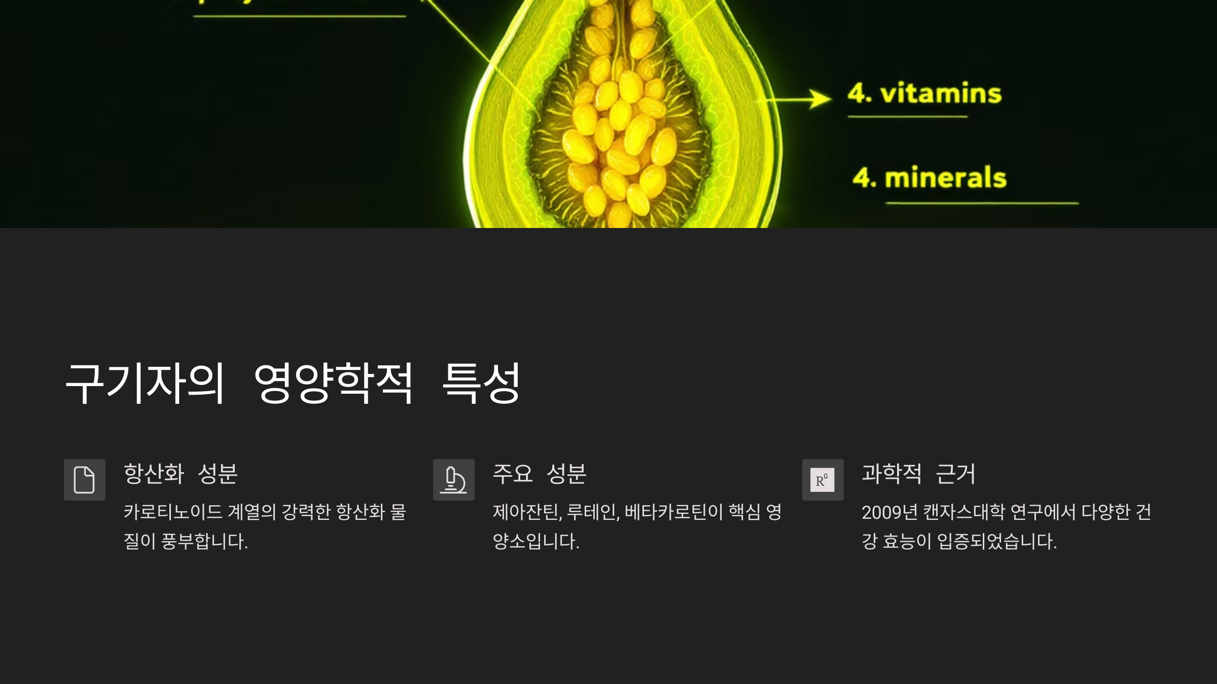 | 제아잔틴 | 망막 기능 유지 | 루테인과 시너지 작용 |