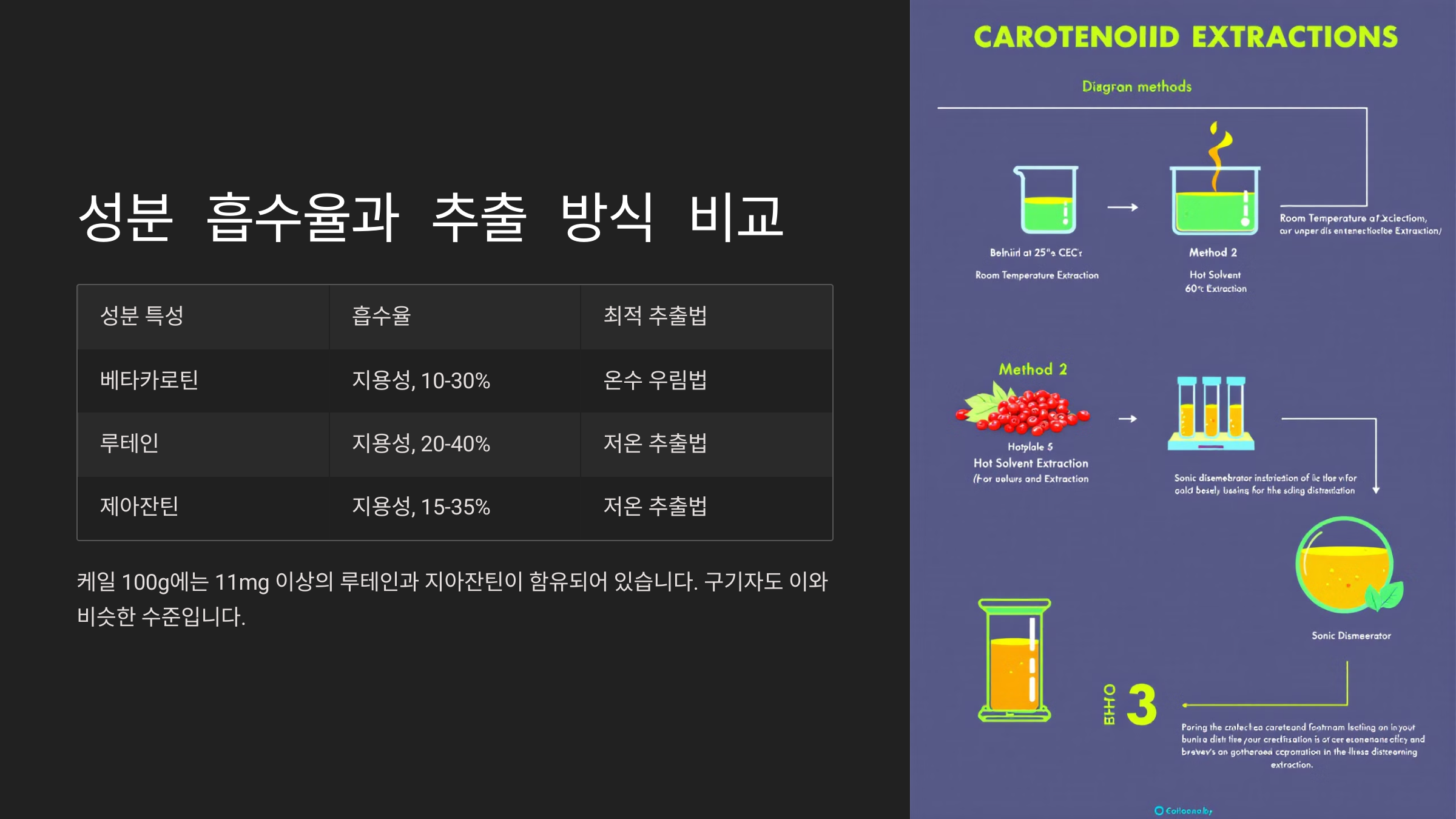 냉침 방식은 열에 민감한 성분을 보존하는 데 좋지만, 전체 성분 추출량은 적어요. 반면 고온에서 끓이면 많은 성분이 빠르게 우러나지만, 루테인이나 비타민 C처럼 열에 약한 성분은 손실될 수 있답니다. 균형 잡힌 온도가 핵심이에요.