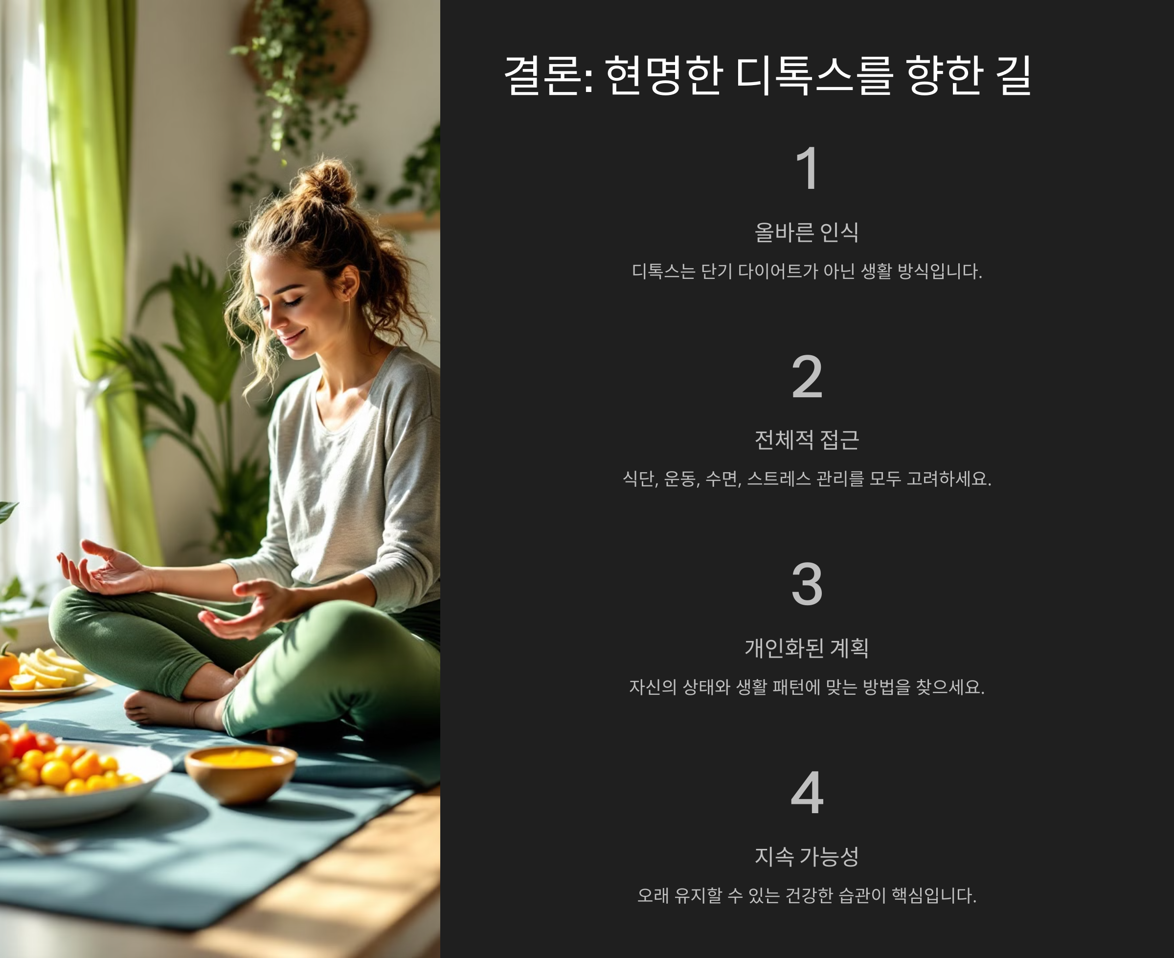내가 생각했을 때, 디톡스는 단순한 '단식'이나 '유행 다이어트'가 아니라 몸과 마음을 정돈하는 하나의 과정이라고 봐요. 그리고 그 과정엔 꾸준함과 균형 잡힌 습관이 함께 해야 진짜 효과를 볼 수 있어요.