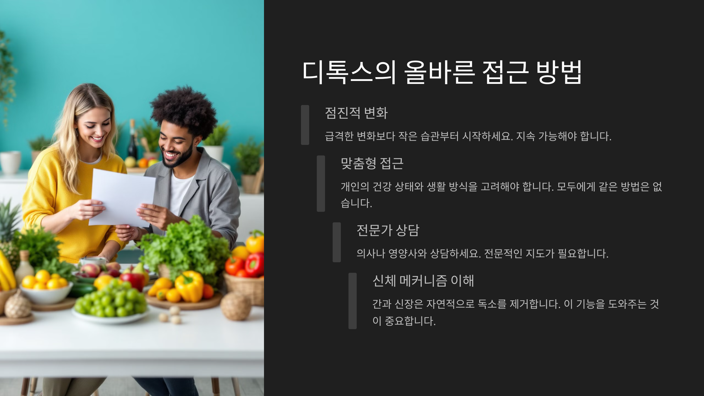 디톡스는 무리하거나 유행에 휘둘리면 오히려 해가 될 수 있어요. 실패를 반복하지 않으려면 실수를 인식하고 제대로 준비하는 것이 첫걸음이에요. 이제, 어떻게 하면 지속 가능하게 디톡스를 이어갈 수 있을지 전략을 살펴볼까요? 😉