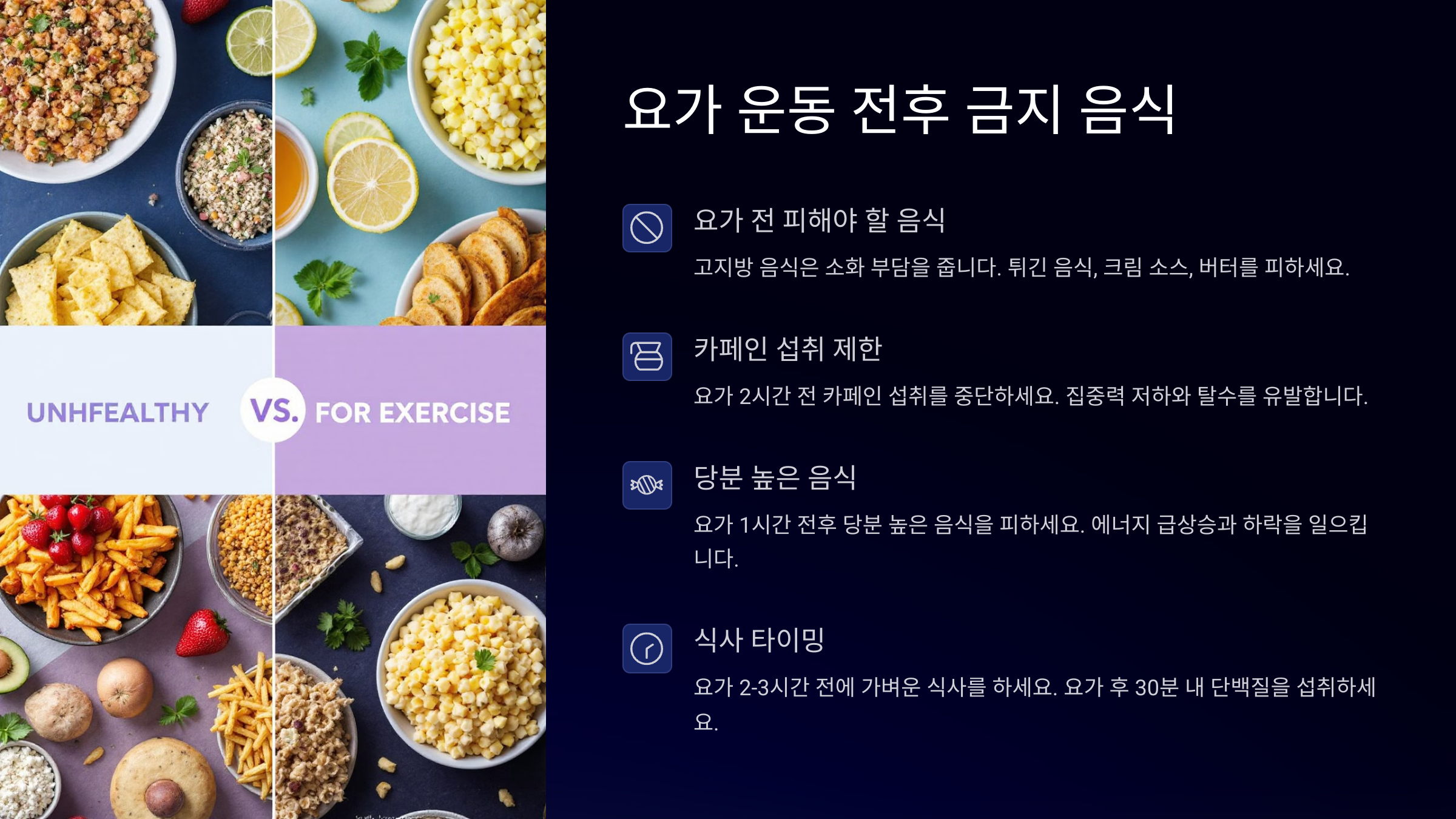 요가 전후 먹으면 안 되는 음식 🚫🍟