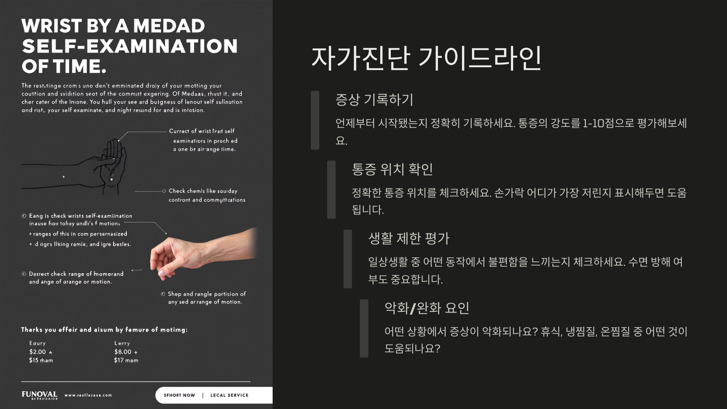 첫 번째는 **통증의 위치**예요. 손바닥 쪽인지, 손등 쪽인지, 엄지인지, 새끼손가락인지 등 정확히 어디가 아픈지 스스로 인식하는 게 중요해요. 이렇게 하면 병원에서도 더 빠르게 판단이 가능하죠.