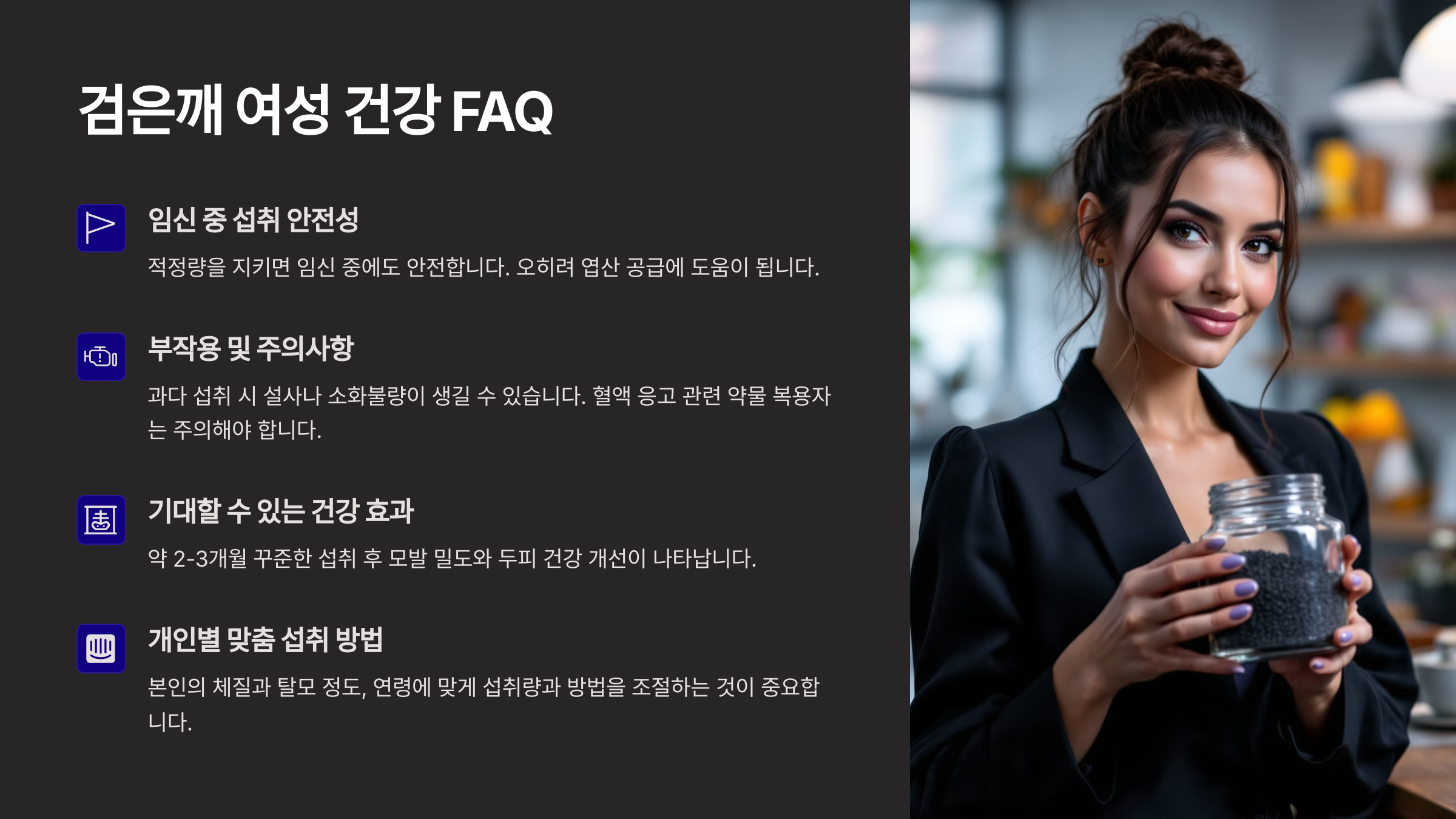 내가 생각했을 때 검은깨는 단순한 곁들임 식재료가 아니라, 진짜 '여성 건강 보약'이라고 불러도 과언이 아니에요. 매일 1~2스푼을 먹는 습관이 탈모는 물론이고 생리통이나 피로에도 좋더라고요.