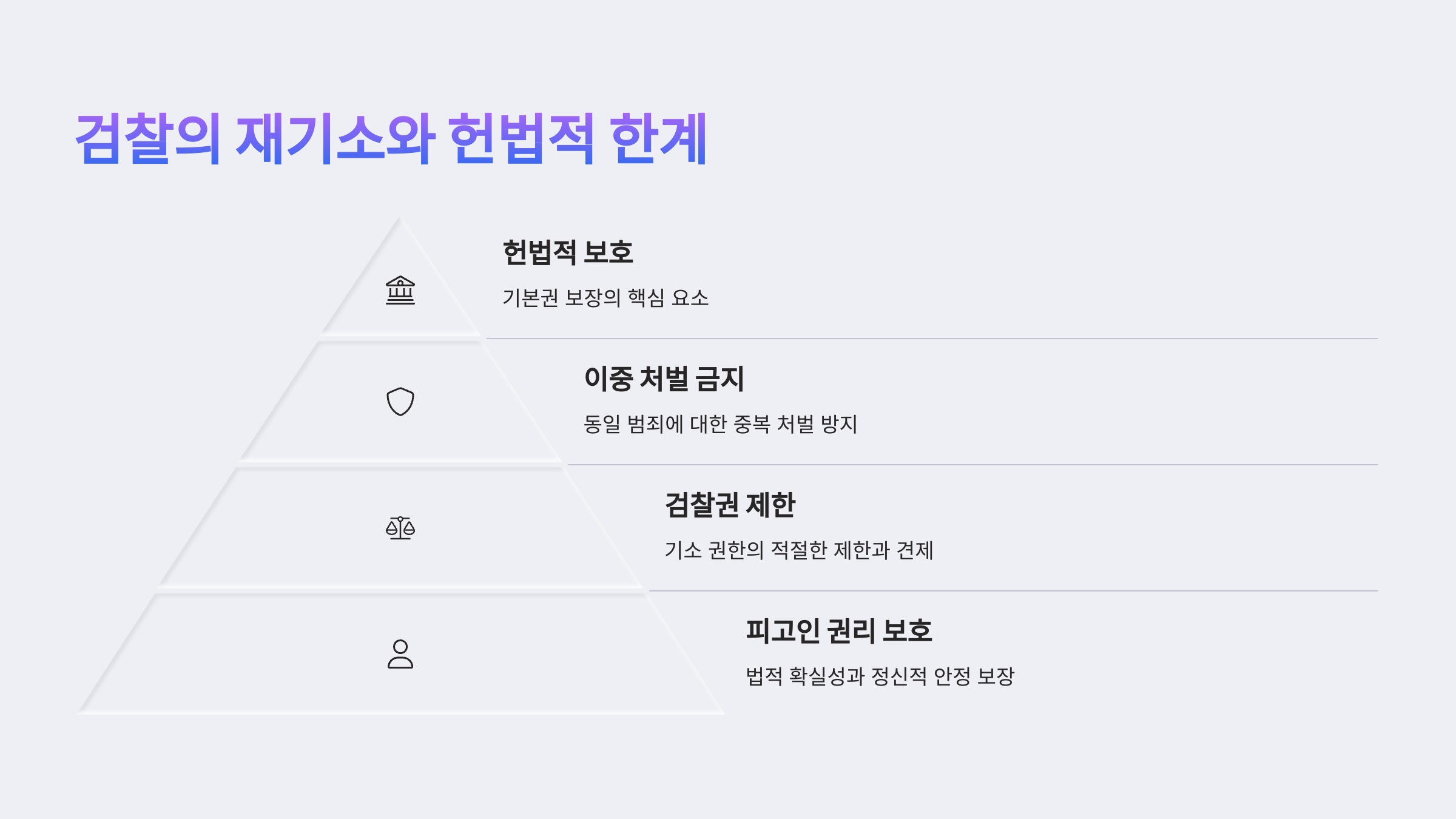 검찰이 무죄 확정 판결이 난 사건을 다시 기소하면 어떤 문제가 생길까요? 이건 단순한 실수가 아니라, 헌법 제13조 위반이라는 심각한 권력 남용으로 이어질 수 있어요. 검찰의 재기소는 피고인의 신뢰 보호 원칙도 정면으로 침해하죠.