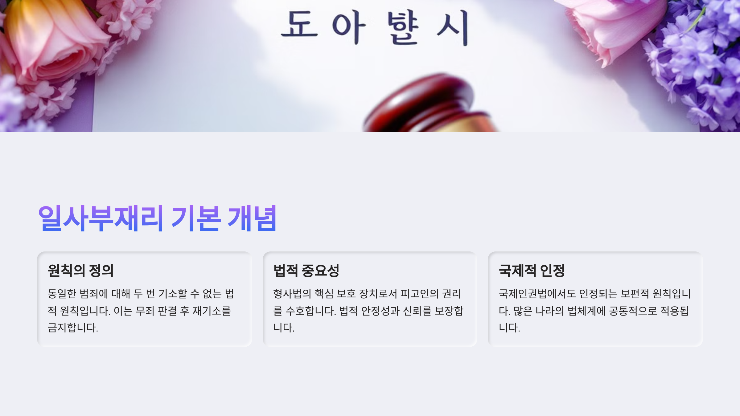 기본적으로 '같은 사건으로 두 번 처벌받지 않는다'는 이 원칙은, 단순한 법 조항이 아니라 형사사법 절차의 공정성과 국가 권력의 남용 방지를 위한 핵심 가치에요. "내가 생각했을 때" 이 원칙을 정확히 알면, 법정에서도 내 권리를 당당하게 주장할 수 있어요. ✊