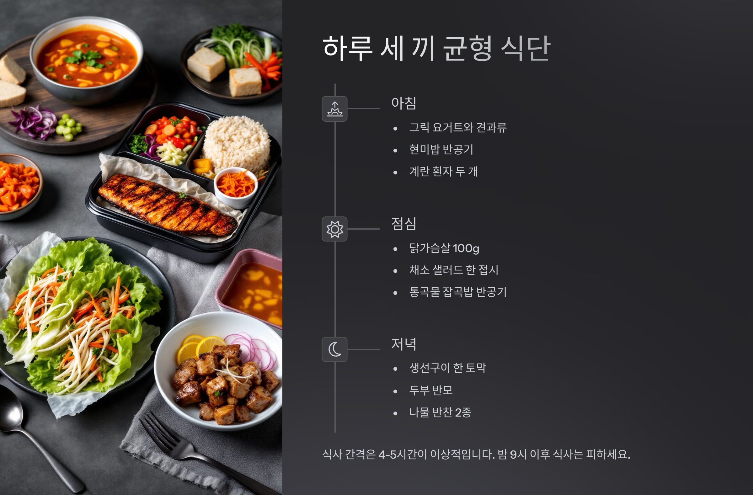 그럼 다음은 하루 세 끼를 어떻게 균형 있게 먹을지, 실질적인 팁을 알아볼게요! 🍽️