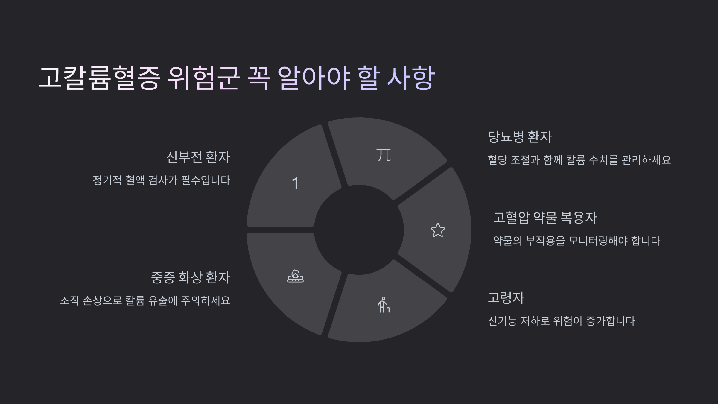 그렇다면, 고칼륨혈증이 더 위험한 사람들은 누구일까요? 다음에서 알아볼게요! 🔍