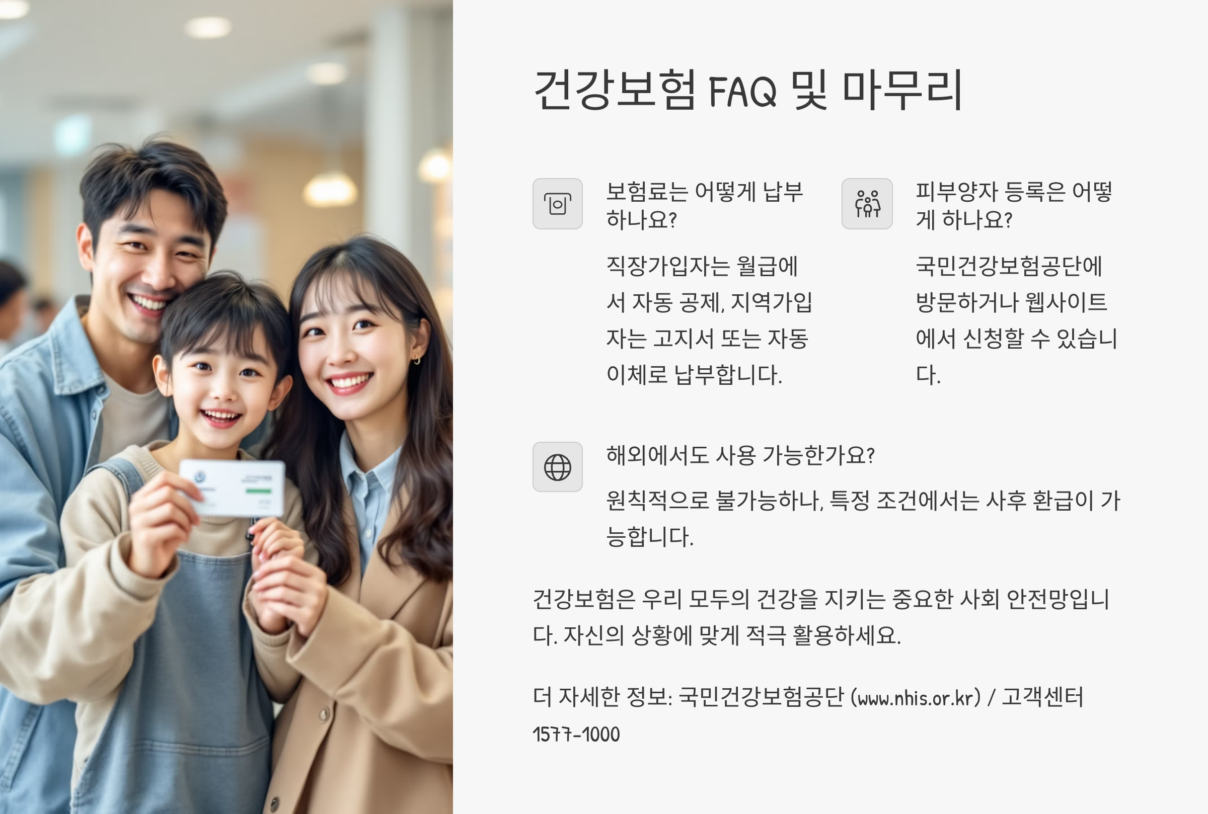 이제 마지막으로 건강보험에 대해 사람들이 자주 묻는 질문 8가지를 정리해볼게요. 실생활에서 가장 궁금해하는 것들이라 도움이 많이 될 거예요! 👇