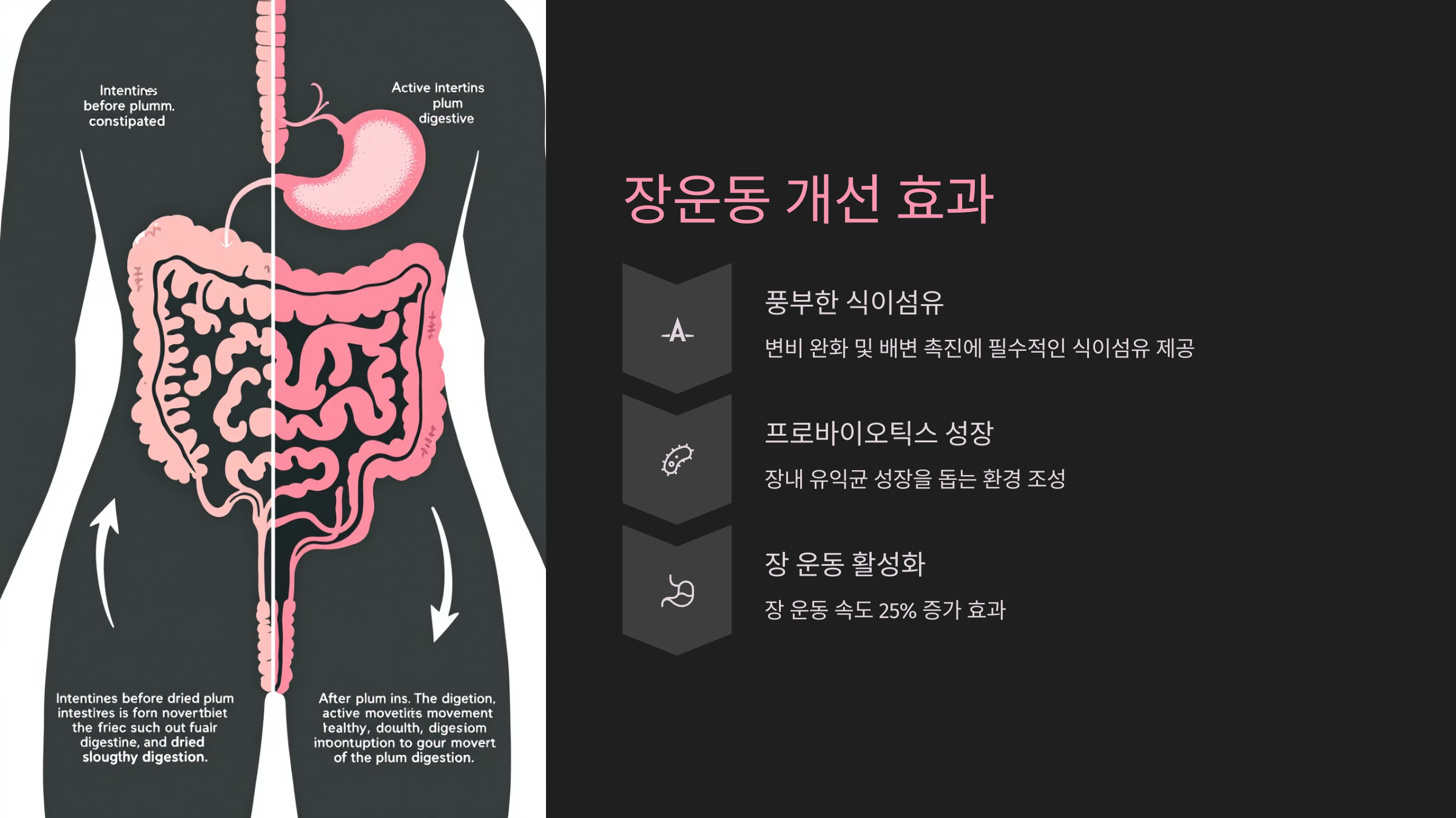 말려서 응축된 건강, 건자두는 제대로 알고 먹으면 정말 든든한 건강 간식이 될 수 있어요. 지금부터는 건자두가 장에 어떤 영향을 미치는지 자세히 볼게요 💨