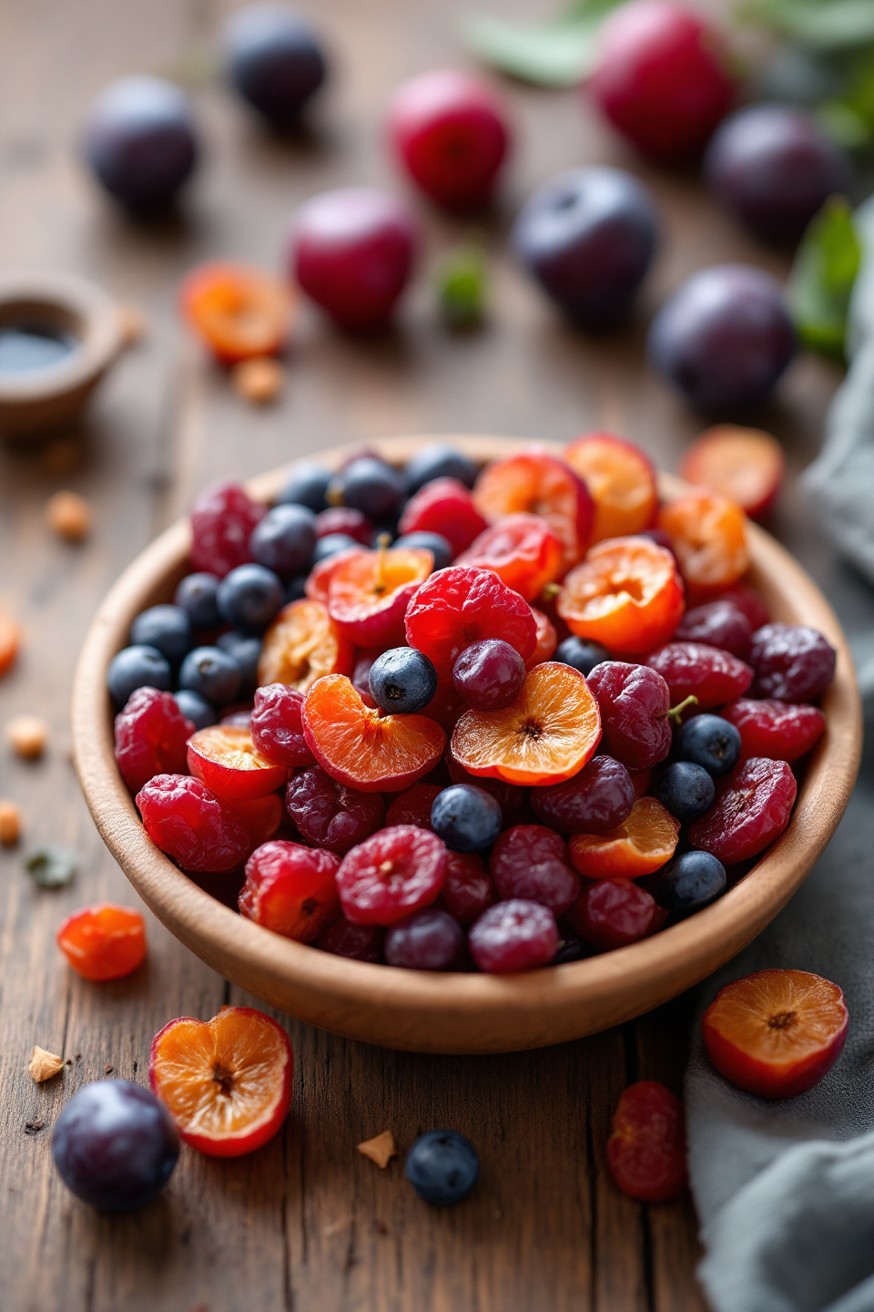 이뿐만 아니라 건자두에는 폴리페놀, 베타카로틴, 철분, 칼륨 등의 미네랄도 가득 들어 있어서, 피부 건강, 빈혈 예방, 혈압 조절에도 긍정적인 영향을 줘요. 말리는 과정에서 생기는 깊은 단맛도 별미랍니다!