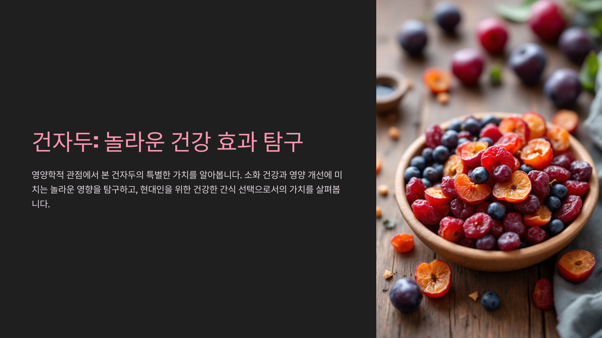 특히 건자두는 식이섬유와 항산화 성분이 농축되어 장 건강에 아주 좋은 과일로 꼽혀요. 말리는 과정에서 수분이 빠지면서 영양이 응축되기 때문에, 그 효과는 생자두보다 더 강력해지죠.