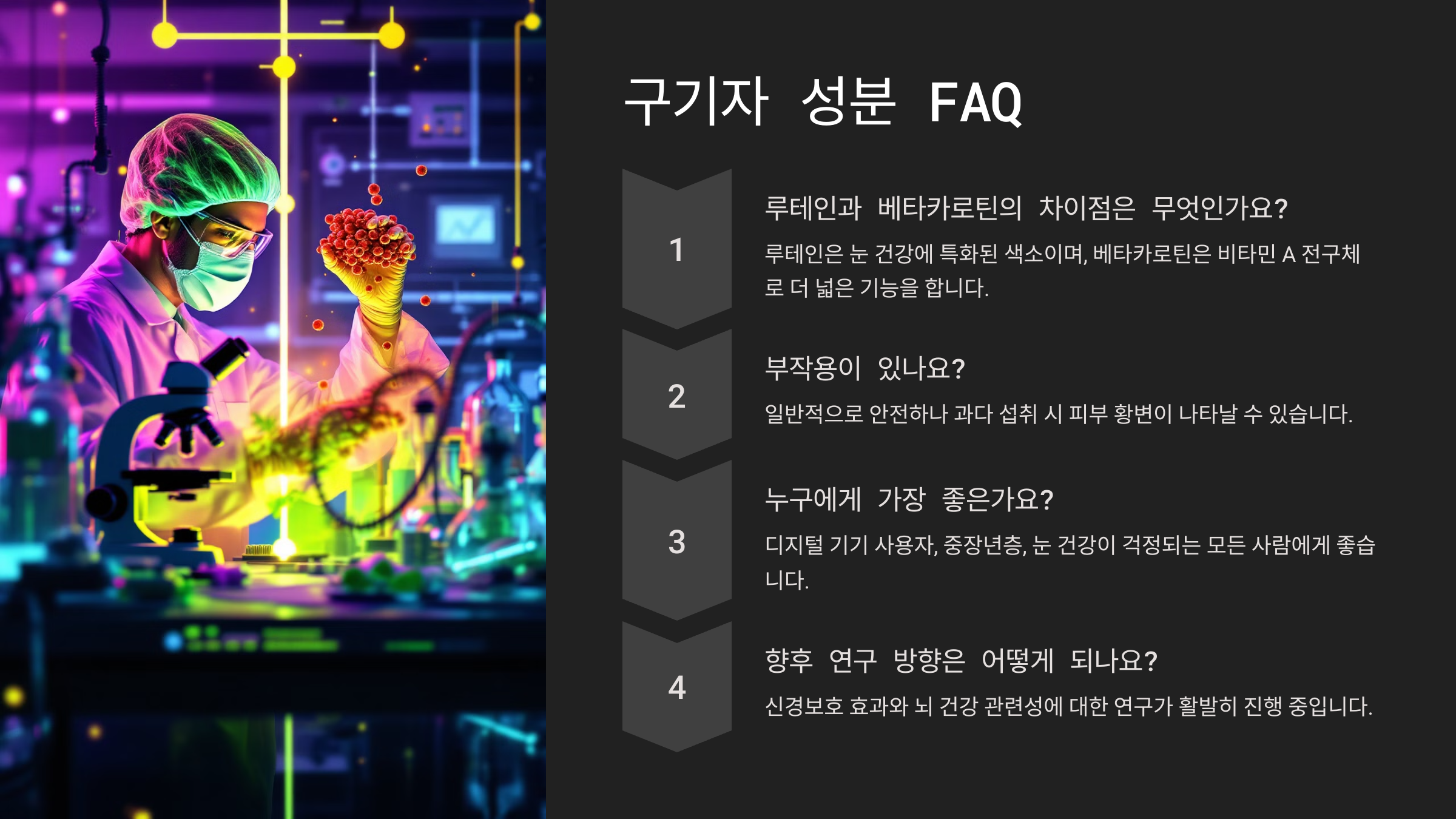 A4. 보충제만큼의 고함량은 아니지만, 천연 루테인을 꾸준히 섭취할 수 있어요.