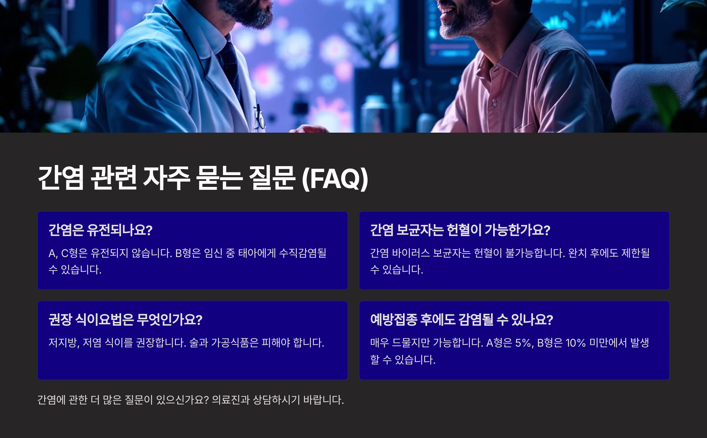 간염 예방은 결국 내 몸을 지키는 가장 쉬운 방법이에요. 바쁘더라도 백신 접종은 미루지 말고 챙겨보세요. 지금 조금만 신경 쓰면 나중에 훨씬 건강하게 오래오래 살 수 있어요! 😄