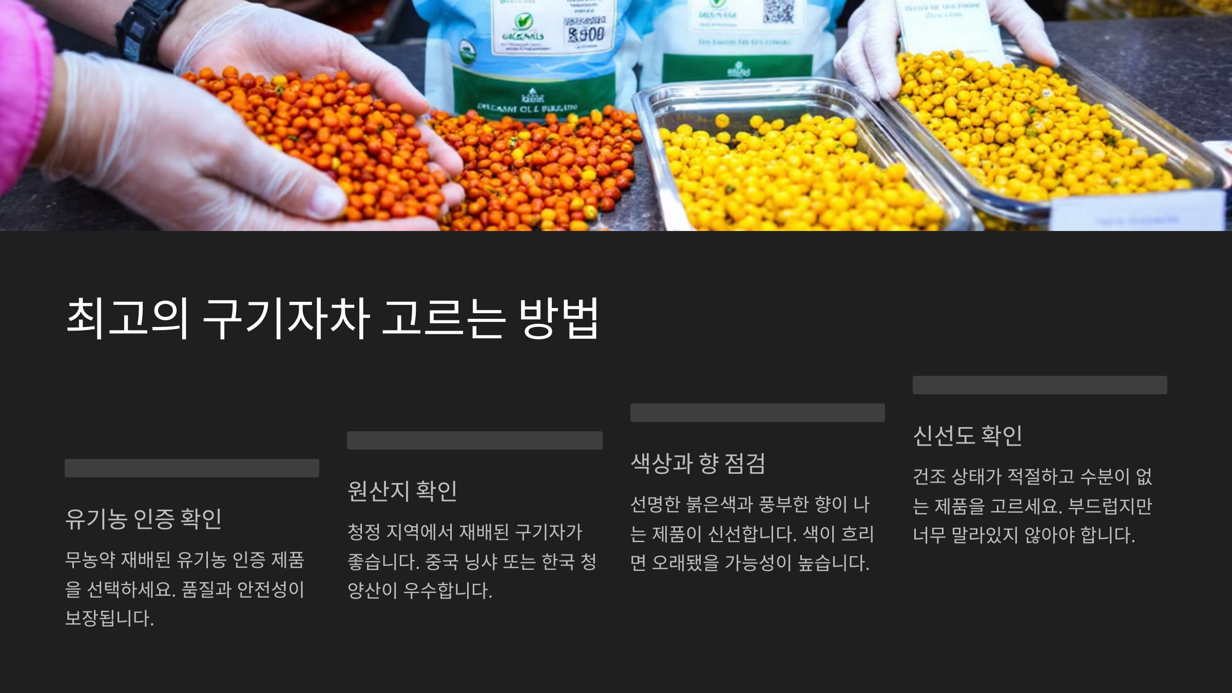 좋은 구기자차를 고르기 위해선 몇 가지 체크 포인트가 있어요. 우선 구기자의 원산지를 꼭 확인하세요. 중국산이 대다수지만, 국내산(특히 영천, 김천 등)은 더 엄격한 품질 관리 아래 재배되기 때문에 신뢰도가 높아요.