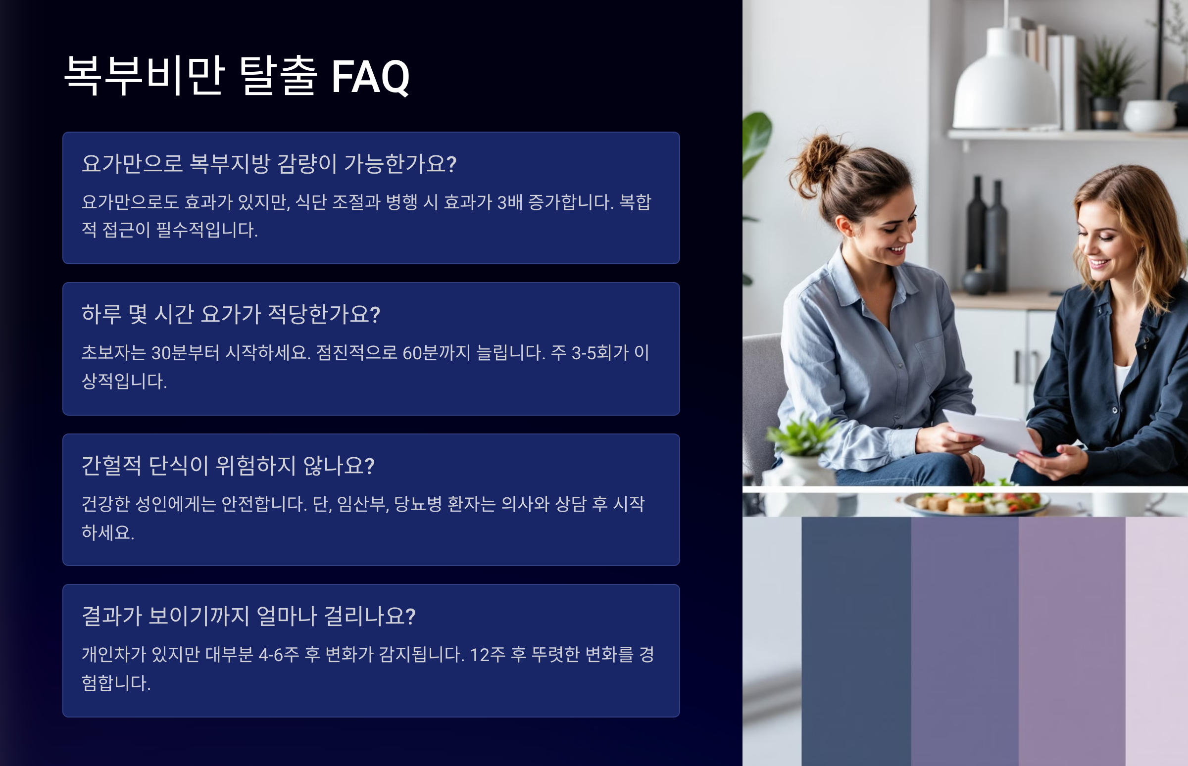이제 마지막으로 궁금했던 것들! 요가와 식단 병행에 대한 자주 묻는 질문들 FAQ로 정리해드릴게요! 📚