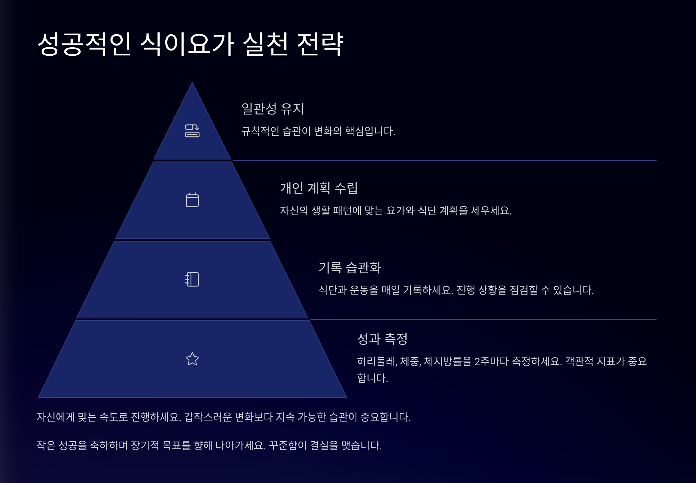 | 3~4주차 | 복부 둘레 감소, 가벼운 몸 느낌 | 단백질 보충, 저염식 |