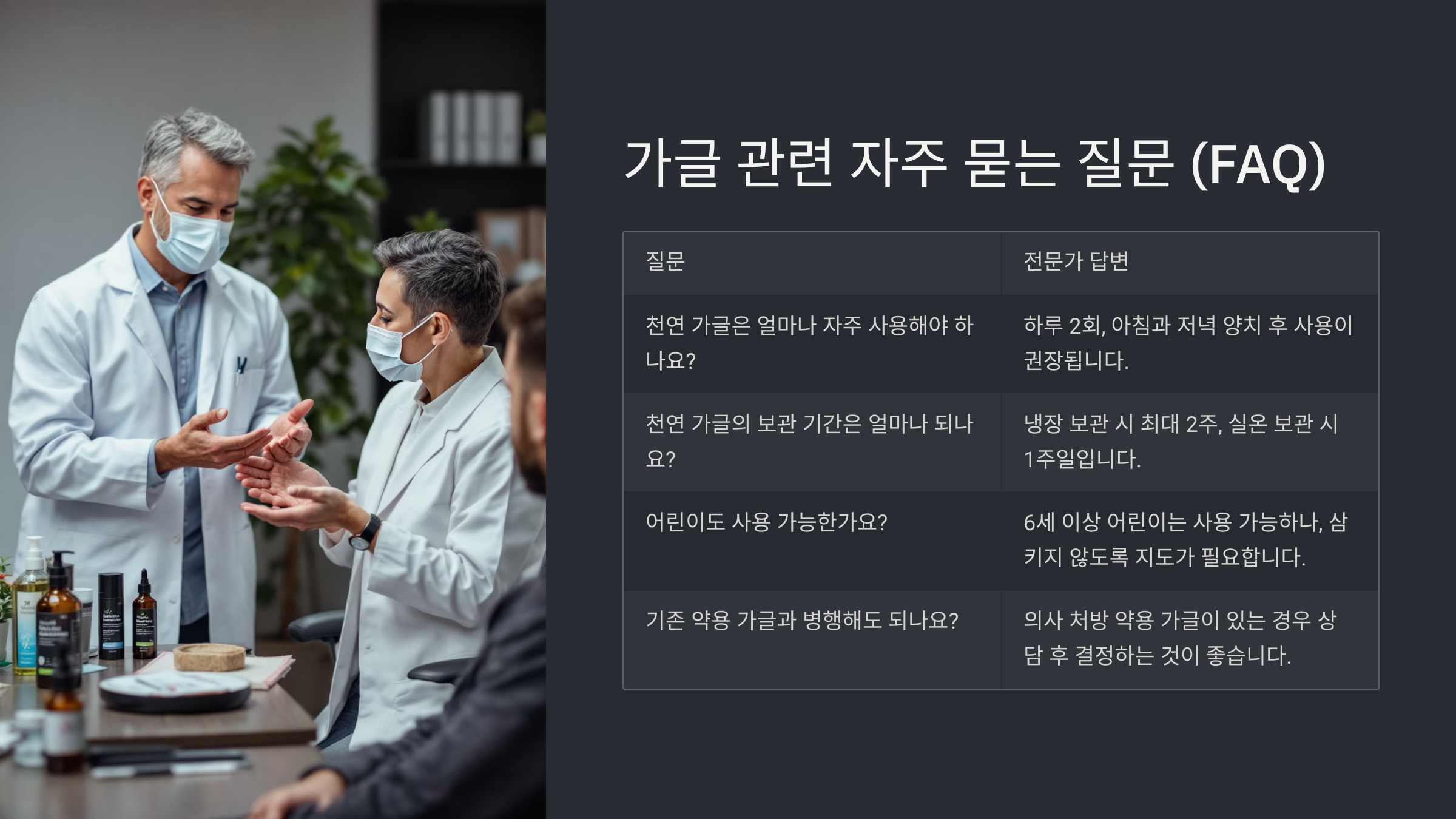 이처럼 천연 가글은 알레르기 반응의 가능성도 고려해야 하지만, 올바른 사용법과 사전 테스트를 거치면 안전하게 즐길 수 있어요. 자신의 체질에 맞는 성분을 선택하는 것이 무엇보다 중요해요. 다양한 제품을 비교해 보고, 전문가의 조언도 듣는 것이 좋다고 느꼈어요. 천연 가글의 매력을 제대로 누리기 위해서는 꼼꼼한 관리가 필요해요.