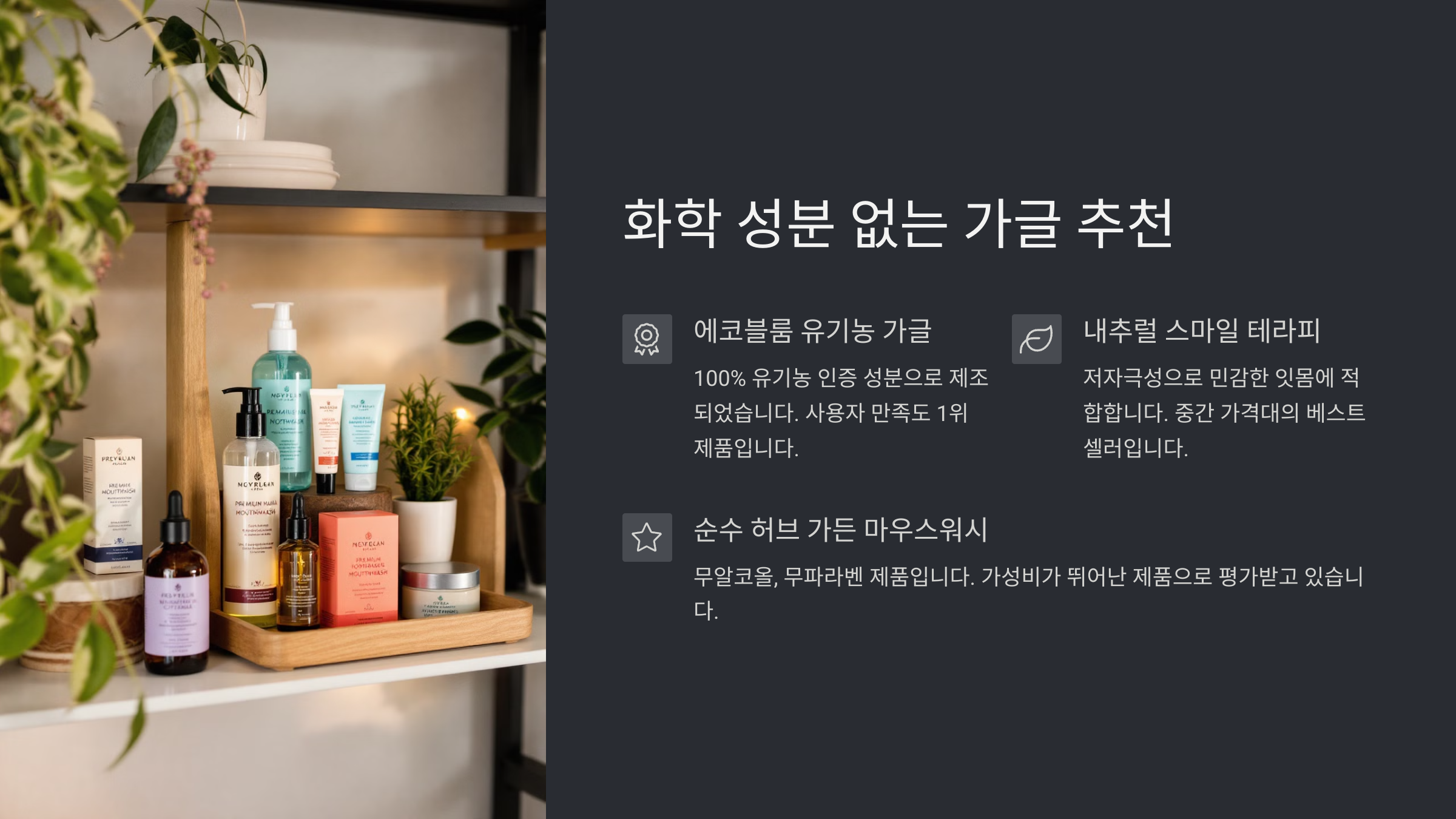 내가 생각했을 때, 가장 큰 매력은 매일 사용하는 구강 제품에서 불필요한 걱정을 덜 수 있다는 점이에요. 치약처럼 매일 쓰는 만큼, 몸에 부담이 적은 제품을 쓰는 게 진짜 중요하다고 느꼈어요!