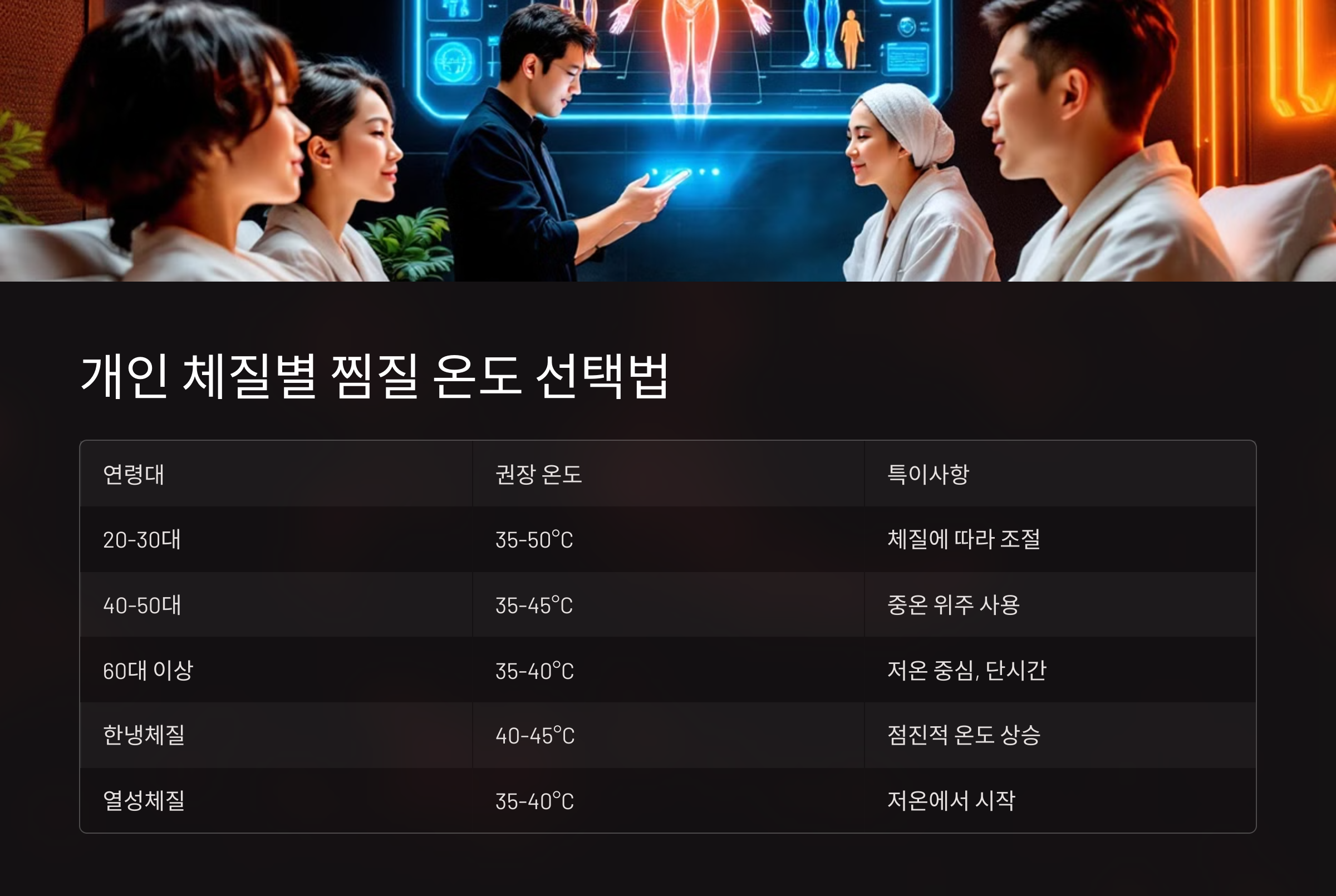 찜질의 효과를 제대로 보기 위해서는 자기 상태를 잘 파악하고, 그에 맞는 온도를 선택하는 게 중요해요. 괜히 남들 따라 고온방 들어가서 땀 쭉 빼는 게 전부는 아니랍니다!😎
