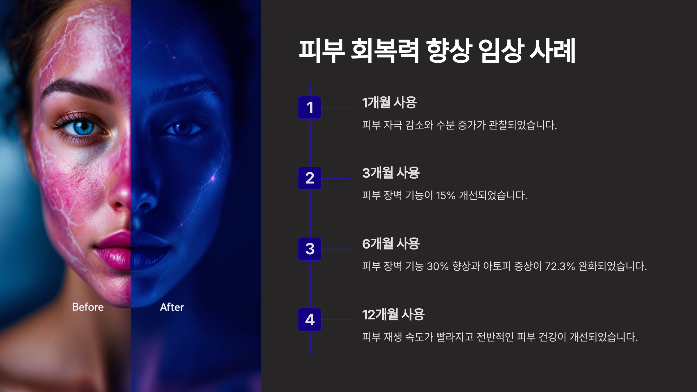 | 서울 ○○대병원 | 50명 | 피부 수분 증가, 가려움 완화 |