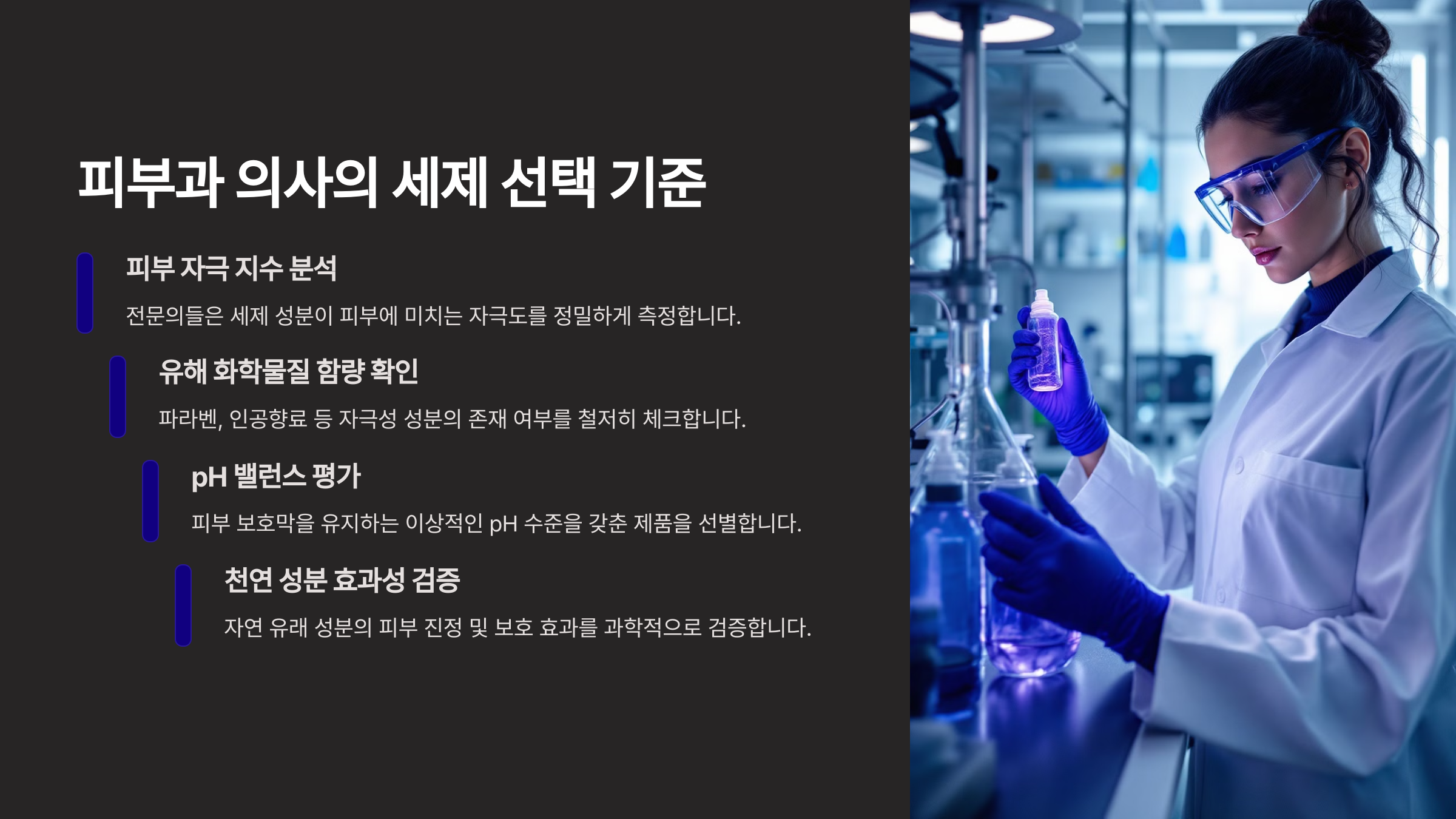 피부과 전문의들은 세제를 고를 때 단순히 '세척력'만 보지 않아요. 오히려 얼마나 피부에 안전한 성분으로 구성되어 있는지가 가장 중요한 기준이에요. 특히 장시간 피부에 닿는 세탁물이나 속옷은 세제의 잔여물이 피부 자극으로 이어질 수 있기 때문에 더 신중해야 해요.