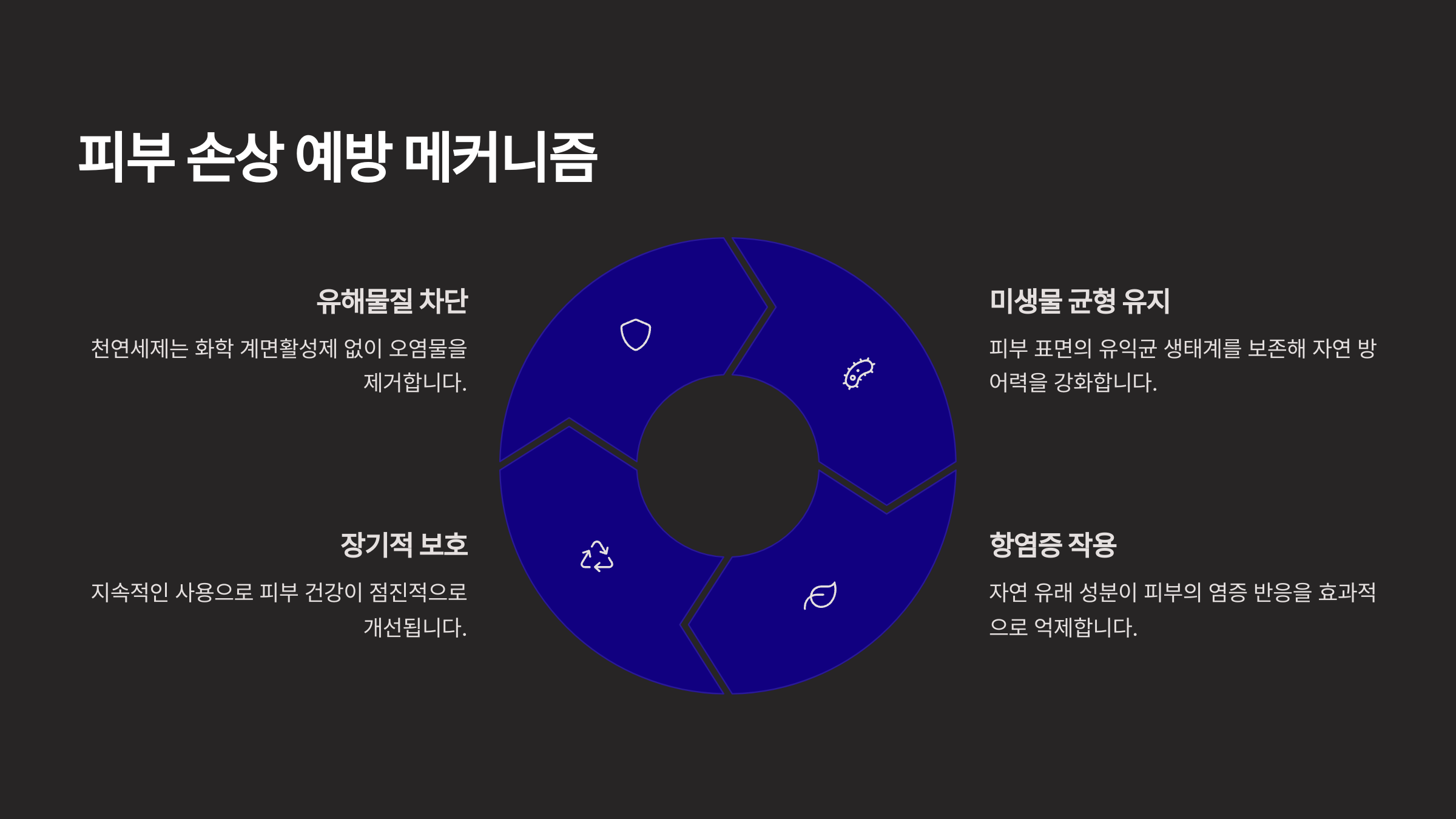 천연세제가 피부 손상을 예방하는 데 효과적인 이유는 아주 간단해요. 자극적인 화학 성분을 제거하고, 피부와 유사한 천연 성분을 사용하기 때문이에요. 즉, 피부에 불필요한 공격을 하지 않으니 스스로 회복하고 유지하는 능력이 높아지는 거죠.