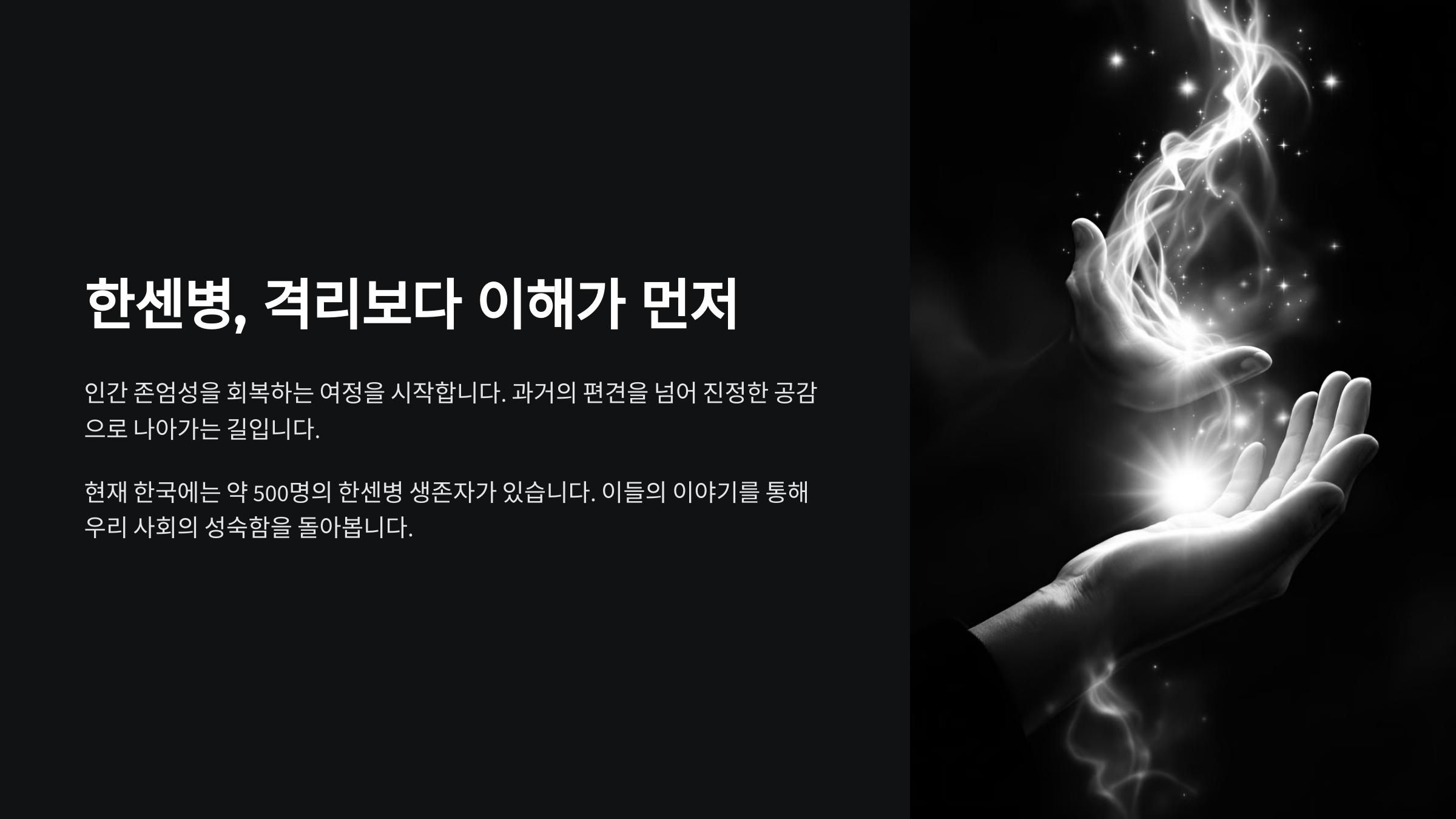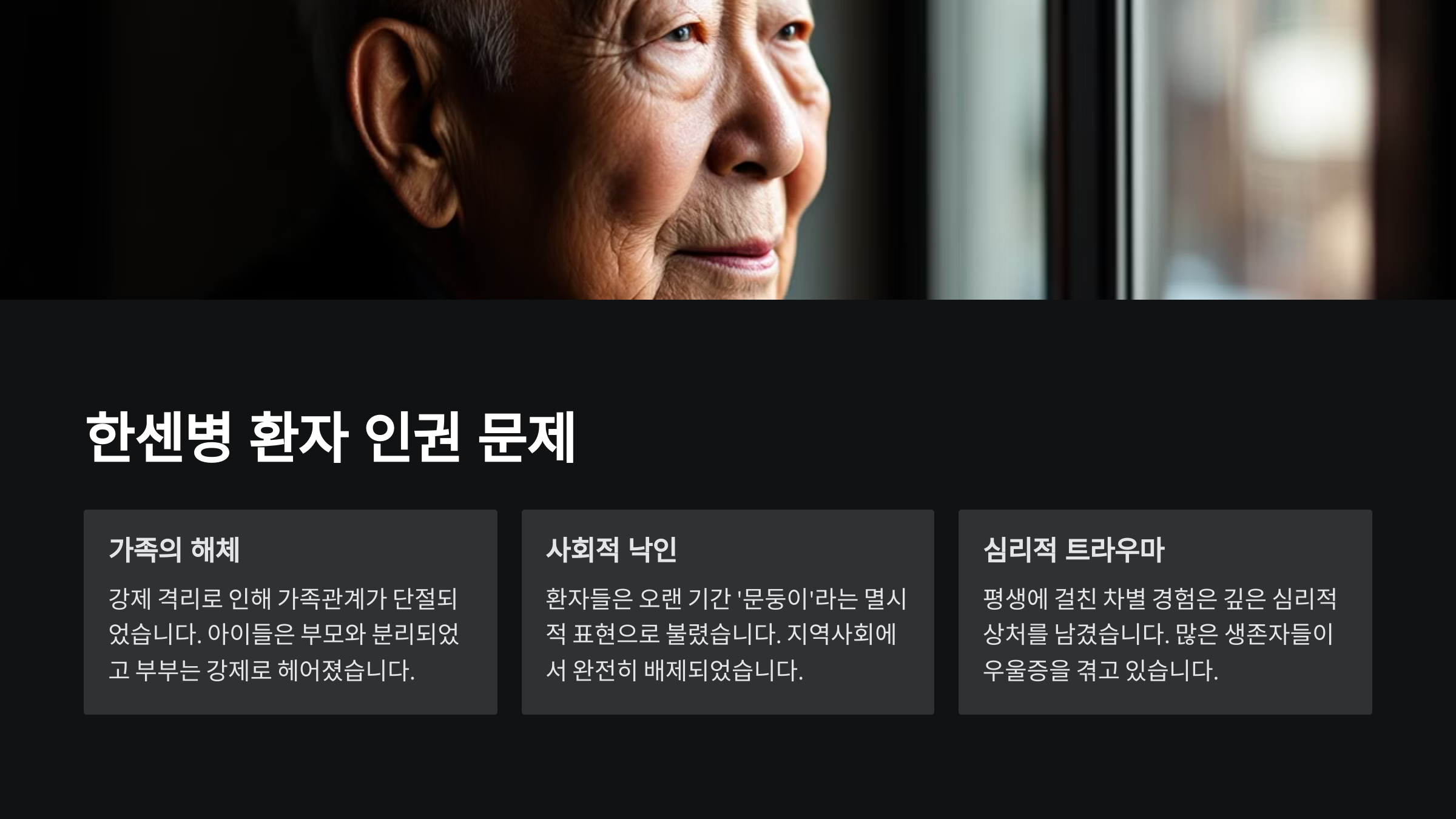 한센병은 병보다 더 큰 고통을 ‘사람의 시선’에서 받았어요. 우리는 이들의 과거를 제대로 알고, 다시는 이런 일이 반복되지 않도록 배워야 해요.
