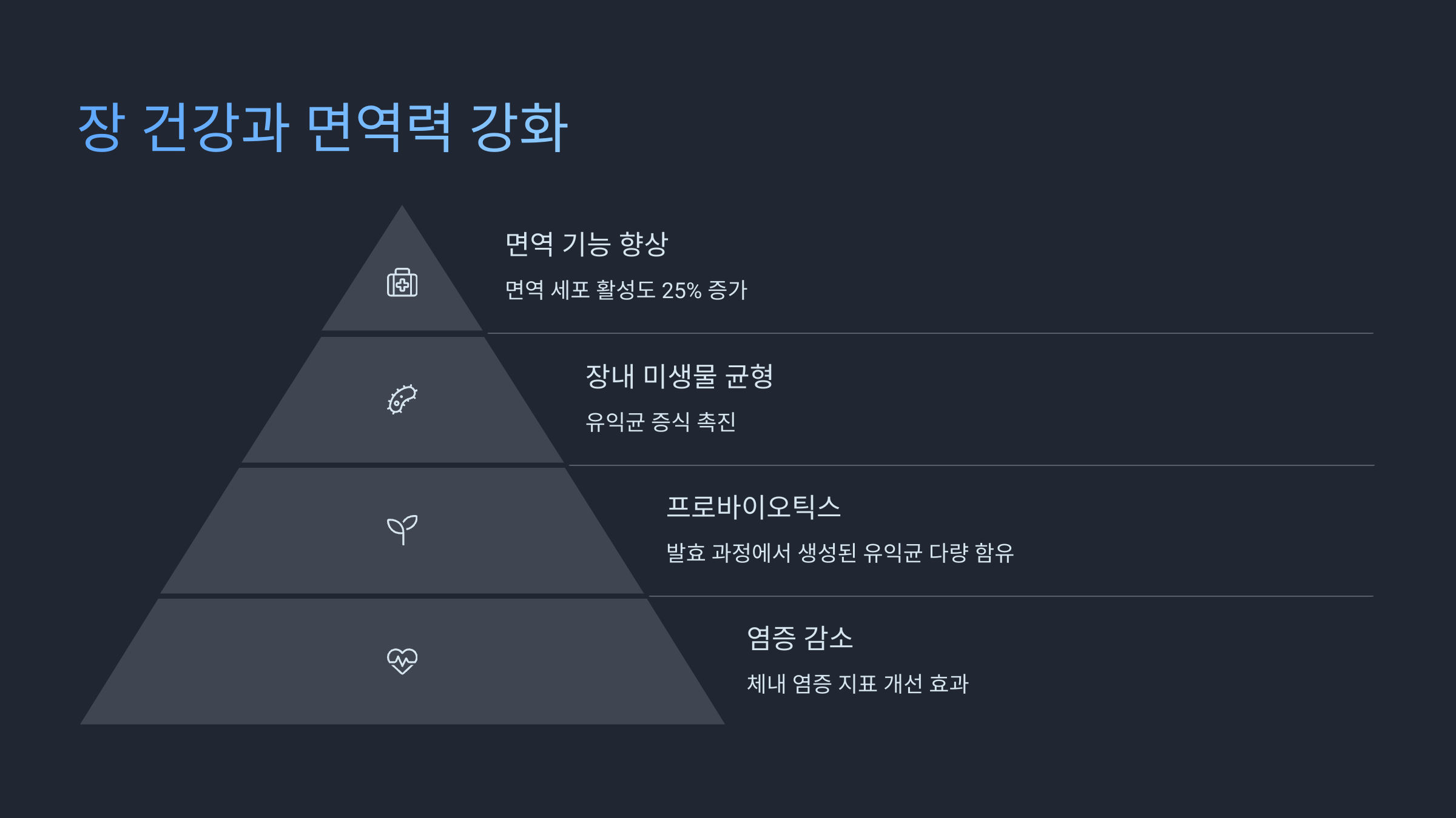 이런 발효 과정은 음식의 소화 흡수를 돕고, 장내 유익균을 증가시키는 데 큰 역할을 해요. 특히 된장은 유산균과 효모가 살아 있는 상태로 섭취되면 장 건강을 튼튼하게 만들어줘요.
