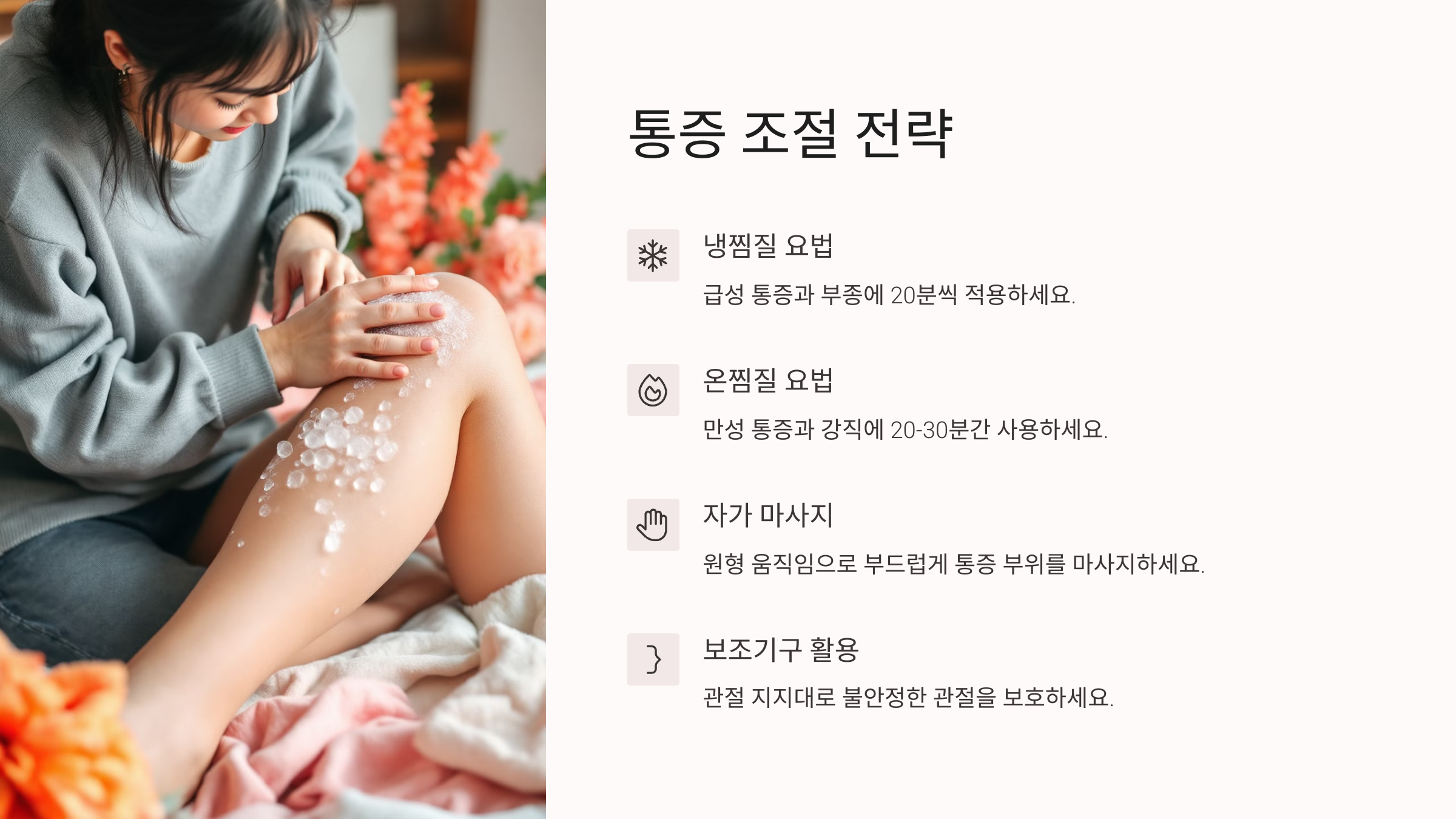 생활 속에서 휴식과 활동의 균형을 잡는 것도 중요해요. 너무 오래 앉아 있거나 누워 있는 건 오히려 관절에 더 악영향을 줄 수 있어요. 30분마다 한 번씩 일어나서 스트레칭하는 습관을 가져보세요.
