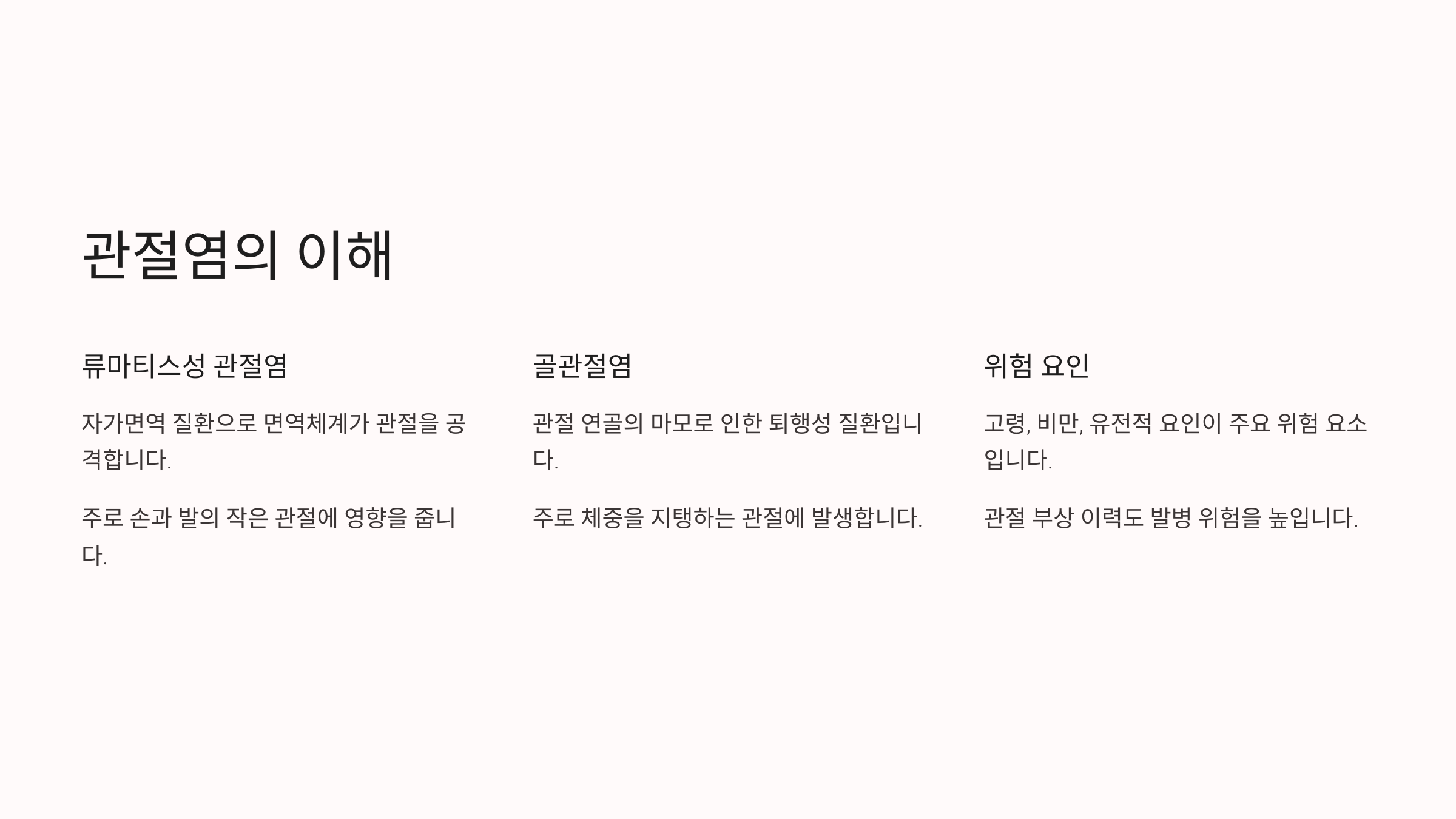 관절염을 오래 앓고 있거나, 혹은 초기 증상이 느껴지는 분들에게 이 글이 새로운 희망이 될 수 있을 거예요. 자, 이제 본격적으로 관절염에 대해 하나씩 알아볼까요? 🙌
