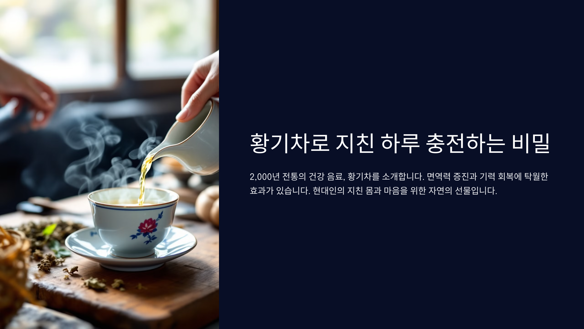 내가 생각했을 때 요즘 같은 시기에 이렇게 자연에서 온 전통 식재료가 다시 사랑받는다는 건 참 반가운 일이에요. 자연과학과 전통 지혜가 만나는 지점이 바로 이런 황기차 같은 존재가 아닐까요?