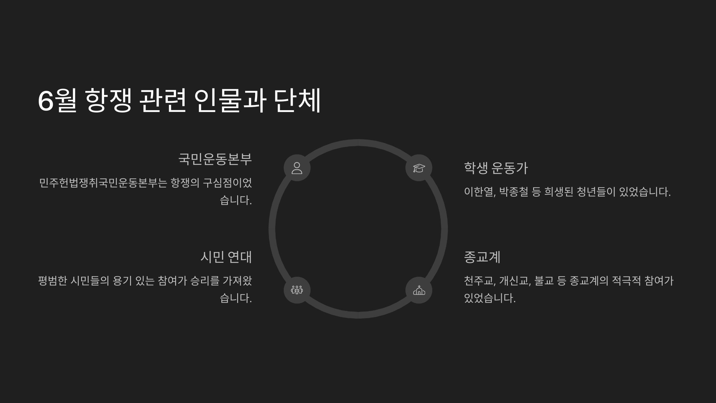 👤 6월 항쟁 주요 인물과 단체 요약표 🧾